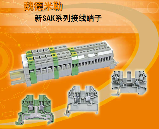 魏德米勒经过60多年的市场考验,SAK已经成为了接线技术的经典代名词,SAK也成为了可靠联接及产品种类丰富的代名词。可以这么说,SAK系列是世界上第一个帮助电气领域获得技术突破的接线端子系列。新型SAK系列正是在这一经验系列的基础上进行产品优化和技术的突破的情况下应用而生的,满足了联接技术市场对产品不断升级的需求。新型SAK系列接线端子采用改型的PA66材料,具有V0阻燃等级和120度的最高工作温度,经典的压线框接线技术保证了可靠的联接及很高的压紧力。产品的尺寸也在不降低相关电气技术参数的基础上进行了缩小,使得产品可以在更紧凑的空间里得到应用